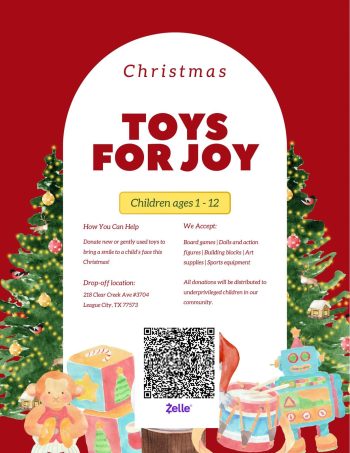 We are partnering with ICO for their Toys for Joy outreach! Please consider donating new or gently used toys for kids ages 1 to 12. All toys are due by December 18th. Thank you for helping us bring joy to local families this Christmas.